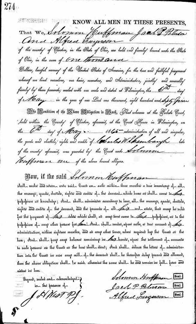 Estate of Charles William Shambaugh - 1865 - Clinton Co., OH