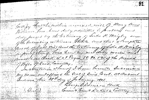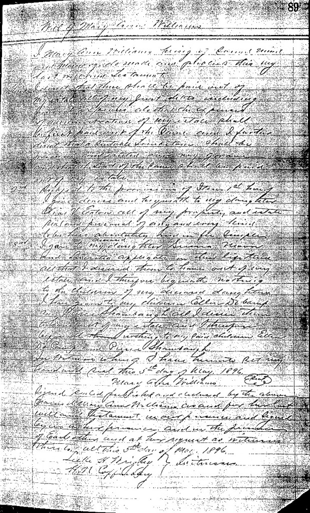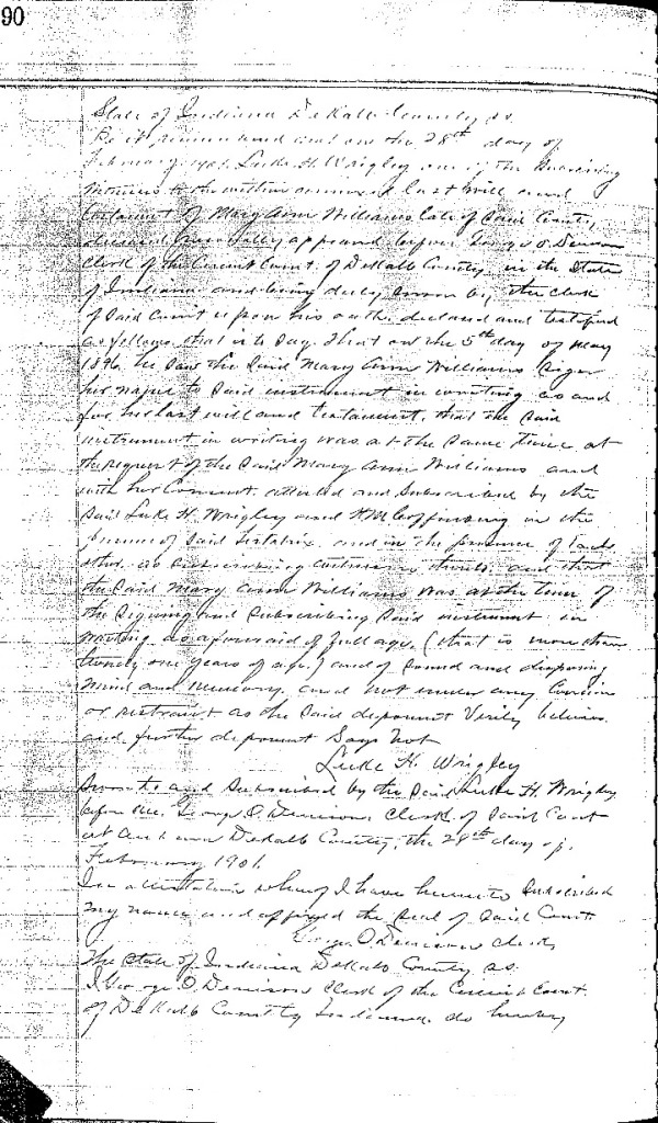 Will of Mary Ann (Weirich) (Shambaugh) Williams - 1901 - DeKalb Co., IN